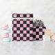 Abstract digital art of pink and black squares in a checkered formation.With the ability to change the white squares by changing the background color to match the black squares.