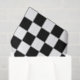 Tissue paper with checkers, black and any other color (just customize). Shown here in black and white checker with our tiny logo on the bottom right of the paper.