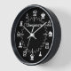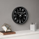 An elegant and simple chess inspired wall clock with graphic chess pieces representing the hour markers and chequered pattern indicating the minutes on a clean black background. The customisable text makes this time piece a great personalised gift idea for the chess playing enthusiast.