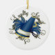 This ornament features blue and and gold poms and megaphone are encircled by the words "Cheer Loyalty Strength Pride Spirit" and room on the back to add a special picture.