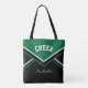 Cheerleader Tote Bag. Featuring a dark green cheerleader outfit style with DIY text. Add your name and/or school name. More colours available. Makes a great personalised gift for a cheerleader. #ZAZZLEMADE ✔Note: Not all template areas need changed. 😀 If needed, you can remove the text and start fresh adding whatever text and font you like. 📌If you need further customisation, please click the "Click to Customise further" or "Customise or Edit Design" button and use our design tool to resize, rotate, change text colour, add text and so much more. ⭐This Product is 100% Customisable. Graphics and / or text can be added, deleted, moved, resized, changed around, rotated, etc... ⭐99% of my designs in my store are done in layers. This makes it easy for you to resize and move the graphics and text around so that it will fit each product perfectly. 📌 (Please be sure to resize or move graphics if needed before ordering) You can also "TRANSFER DESIGN" on other Zazzle products and adjust the design to fit most of Zazzle items. (button is down on the right side of the page) This design is made with high resolution vector and/or digital graphics for a professional print. 📌NOTE: (THIS IS A PRINT. All #Zazzlemade product designs are "prints" unless otherwise stated under "About This Product" on the left side of this page) The design will be printed "EXACTLY" like you see it on the screen and on the product...so please make sure when you do your changes on the resizing of any of the graphics or text that it fits in the areas correctly and that your spelling and wording is how you like it to be in size, colour and font. If you have any questions about the "DESIGN ONLY" or need help please contact me at ✉ siggyscott@comcast.net or visit my store link: https://www.zazzle.com/store/designsbydonnasiggy (Copy and Paste) I'll be happy to help. 📌 ALL OTHER QUESTIONS (shipping, refund, the printing, the product, etc...) please contact Zazzle or the Maker ⭐DIRECTLY⭐. Thank you for the support and stopping by my store - DesignsbyDonnaSiggy. © Donna Siegrist ⭐⭐⭐ ZAZZLE promises 100% satisfaction. If you don't absolutely love it, Zazzle will take it back! ⭐⭐⭐ 1-888-8ZAZZLE (1-888-892-9953) Phone hours: Mon - Fri: 9AM - 5PM PT (12PM - 8PM ET)