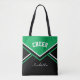 Cheerleader Tote Bag. Featuring a green silhouette cheerleader outfit with DIY text. Add your name and/or school name. More colours available. Makes a great personalised gift for a cheerleader. ✔NOTE: ONLY CHANGE THE TEMPLATE AREAS NEEDED! 😀 If needed, you can remove the text and start fresh adding whatever text and font you like. 📌If you need further customisation, please click the "Click to Customise further" or "Customise or Edit Design" button and use our design tool to resize, rotate, change text colour, add text and so much more. ⭐This Product is 100% Customisable. Graphics and / or text can be added, deleted, moved, resized, changed around, rotated, etc... ⭐99% of my designs in my store are done in layers. This makes it easy for you to resize and move the graphics and text around so that it will fit each product perfectly. 📌 (Please be sure to resize or move graphics if needed before ordering) You can also "TRANSFER DESIGN" on other Zazzle products and adjust the design to fit most of Zazzle items. (button is down on the right side of the page) This design is made with high resolution vector and/or digital graphics for a professional print. 📌NOTE: (THIS IS A PRINT. All #Zazzlemade product designs are "prints" unless otherwise stated under "About This Product" on the left side of this page) The design will be printed "EXACTLY" like you see it on the screen and on the product...so please make sure when you do your changes on the resizing of any of the graphics or text that it fits in the areas correctly and that your spelling and wording is how you like it to be in size, colour and font. If you have any questions about the "DESIGN ONLY" or need help please contact me at ✉ siggyscott@comcast.net or visit my store link: https://www.zazzle.com/store/designsbydonnasiggy (Copy and Paste) I'll be happy to help. 📌 ALL OTHER QUESTIONS (shipping, refund, the printing, the product, etc...) please contact Zazzle or the Maker ⭐DIRECTLY⭐. Thank you for the support and stopping by my store - DesignsbyDonnaSiggy. © Donna Siegrist ⭐⭐⭐ ZAZZLE promises 100% satisfaction. If you don't absolutely love it, Zazzle will take it back! ⭐⭐⭐ 1-888-8ZAZZLE (1-888-892-9953) Phone hours: Mon - Fri: 9AM - 5PM PT (12PM - 8PM ET)