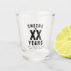 Cheer to custom years wedding anniversary gift shot glass. Elegant gift idea for couple, husband and wife, Mr and Mrs, newly weds etc. Add your own personalised name and year number like 1, 10, 25, 40 years together. Custom shot glasses for vodka, tequila and other strong drinks.