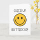 Cheer up buttercup! Simple font with smiley face graphic makes this a cheeky humorous card to give your loved one to cheer them up.
