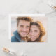 This invitation features a joyful beach scene with two individuals smiling and standing close together, capturing the essence of a carefree day by the ocean. The design showcases a soft color palette of blues and beiges, blending seamlessly with their neutral clothing to create a harmonious and inviting atmosphere. With its realistic depiction and cheerful mood, this template is perfect for celebrating special occasions like weddings or anniversaries in a serene coastal setting.
