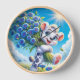 A delightful illustration of a cute brown bear happily carrying a large bouquet of vibrant blue flowers under a bright, sunny sky. The scene is filled with blooming flowers and a few playful water droplets, creating a joyful and whimsical nature setting.Tags: bear, blue flowers, cute, illustration, nature, sunny, bouquet, whimsical, vibrant, cheerful, wildlife, art