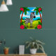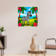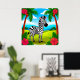 Cheerful Cartoon Zebra in a Tropical Landscape Poster
