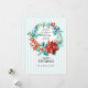 A pin stripe background sets the scene for a gorgeous wreath of pine, berries and poinsettia flowers. <br/><br/>The card is easy to customise with your wording, font, font colour and choice of six paper types.<br/><br/>Not exactly what you're looking for? All our products can be custom designed to meet your needs at no extra charge.<br/><br/>Simply contact us at heartfelthelper@gmail.com<br/><br/>Coordinating products available: