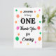 Express your gratitude with this delightful thank you card featuring a colourful balloon background. Perfect for thanking guests for celebrating your little one's first birthday!