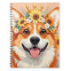 Cheerful corgi dog crown of daisies and sunflowers notebook