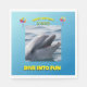 Add a splash of joy to the party table with a smiling dolphin leaping from the waves, framed by festive balloon bunches at the top corners. The arched “Happy Birthday” with the celebrant’s name above the dolphin creates a playful centerpiece, while the bold “Dive Into Fun” tagline at the bottom adds extra cheer. Bright aquatic tones, crisp dropshadow text, and lively accents make this napkin perfect for kids’ birthdays, ocean‑themed parties, or anyone who loves marine life fun.