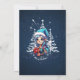 Cheerful elf who shines with her long, flowing blue hair. Her hair seems to shimmer in the soft light, giving her a magical glow. On her head she wears a cute blue Christmas hat decorated with a white pompom that matches her outfit perfectly. Her warm smile radiates joy and warmth, giving viewers a sense of festive anticipation. The background of the design features stylised white Christmas trees, and the sky is dotted with sparkling white stars that shine like little diamonds, creating a magical atmosphere.