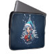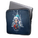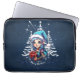 Cheerful elf who shines with her long, flowing blue hair. Her hair seems to shimmer in the soft light, giving her a magical glow. On her head she wears a cute blue Christmas hat decorated with a white pompom that matches her outfit perfectly. Her warm smile radiates joy and warmth, giving viewers a sense of festive anticipation. The background of the design features stylised white Christmas trees, and the sky is dotted with sparkling white stars that shine like little diamonds, creating a magical atmosphere.