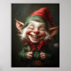 A charming, cheerful elf with a bright red nose and a contagious, wide-mouthed smile. Dressed in festive green with a red hat, this whimsical character embodies holiday joy and warmth. His oversized ears and expressive features make him look endearing and full of mirth, ready to spread happiness around.