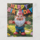 Cheerful Garden Gnome with "Happy Birthday" Banner Postcard