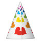 Cheerful hearts in rainbow colours, a cute and modern design party hat to throw a happy party.