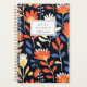 Personalise this planner with your name in black italics framed by a white rectangle, on a bold, cheerful pattern of orange and white flowers on a black background.