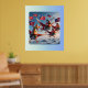 Infuse your space with holiday magic through this delightful wall art showcasing animated red robins dressed in festive winter accessories. Soaring above a snowy landscape with "Happy XMAS" flags, these playful birds radiate joy and charm, creating an uplifting ambiance for your Christmas celebrations. Perfect for adding a touch of whimsy to your holiday decor.