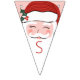 This Christmas bunting coordinates with the other designs in the Cheerful Santa Christmas Collection. The design features close-up of Santa's face on a pink background. The banner spells out Merry Christmas using red letters on Santa's beard.
