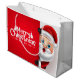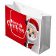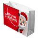 A festive Christmas gift bag featuring a cheerful Santa Claus design, highlighting the vibrant colours and playful details, creating a joyful look.