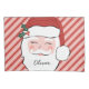 This personalised pillowcase features a cheerful Santa face with place to add a name on Santa's beard. The background is a red and pink striped pattern.