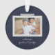 Cheerful sentiments snapshot ornament. Features, 2 framed photos with scrapbook style washi tape accents, 3 template text lines for your message, names and year with heart detail in white on navy blue colour backgrounds.