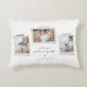 Cheerful sentiments snapshot photo accent pillow. Features, 3 framed photos with scrapbook style washi tape accents, two template text lines for your message and names with heart detail in soft grey on white and grey colour backgrounds.