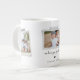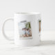Cheerful sentiments snapshot photo mug. Features, 3 framed photos with scrapbook style washi tape accents, two template text lines for your message and names.