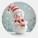 Cheerful Snowman Figurine with Holiday Hat Classic Round Sticker