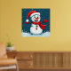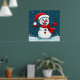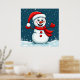 Cheerful Snowman in Santa Hat with Scarf Poster