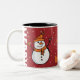 This delightful mug features a charming cartoon snowman set against a festive red background with gentle snowfall. The whimsical illustration and jolly expression are sure to bring a smile to your face and warmth to your heart.