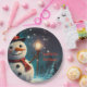 Cheerful Snowman Party Invitation - Festive Card. Paper Plate
