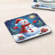 Cheerful Snowman Wearing a Santa Hat Coaster