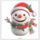 A smiling snowman adorned with a festive red Santa hat and a striped scarf, evoking holiday cheer and a joyful winter atmosphere. Perfect for Christmas and seasonal holiday themes.
