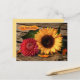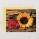 Get Well Soon Postcard featuring a sunflower and dahlia flower on a wood background. The label image is on a separate file and can be deleted if you do not need it.