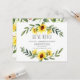 Floral moving announcement featuring a beautiful bouquet of sunflowers & daisy flowers set on a white background with a matching floral back.