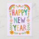 Cheerful Whimsical HAPPY NEW YEAR Handlettering Postcard