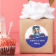 This classic round sticker is shown with a cute cheerleader print with a sample name, customise with this template shown and change the name to yours.