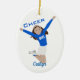 Cheerleader Dark Brunette Blue & White Ceramic Tree Decoration