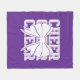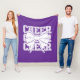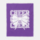 Fleece blanket is shown in a colour of purple with a white cheer bow print.