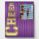 A purple and gold CHEER sits in the side of a purple and gold striped frame - customise this plaque with your own picture