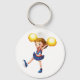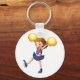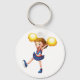 A cheerleader in uniform waving around some yellow pom poms. This design looks really effective on this Keychain