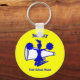 Cheerleader's key chain with cheer megaphone and cheerleader in royal, white, and yellow. Customise with your name and school name, change text or remove text. The background colour can be changed or other colour choices are available. Great gift or stocking stuffer for the cheerleader in your life.