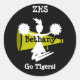 Cheerleader's stickers with cheer megaphone and cheerleader in black, gold, and white. Customise with your name and school name, change text or remove text. The background colour can be changed or other colour choices are available. Great gift or stocking stuffer for the cheerleader in your life. Buy in bulk and pass out at the pep rally!