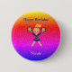 Cheerleading "Happy Birthday" Blue Sparkle Button - Personalize this cheerleading birthday button with the name of your cheerleader for a cheer - perfect party!