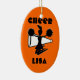 Cheerleader's ornament can be customised with name, team name, or other text. Great gifts for cheer squad or coach at Christmas or any holiday. Personalise with your text on both sides or text can be removed. Background colour can be changed to your team colour. Use year round for fan pulls, pendants, or hang on car mirrors. Be creative!