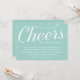 This pretty 25th wedding anniversary party invitation features the phrase "Cheers to twenty-five years" written in white calligraphy against a pretty blue background.