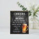 Cheers and Beers Birthday Invitations. Easy to personalise. All text is adjustable and easy to change for your own party needs. Chalkboard and rustic wood background elements. Fun Chalkboard swirls and flourishes. Watercolor beer mug. Invitations for him. Bar or backyard BBQ birthday design. Any age, just change the text.