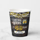 Raise a toast in style with these rustic Cheers & Beers birthday party paper cups! Featuring a dark wood background, glowing string lights, and two frosty beer mugs clinking together, this design sets the perfect tone for a fun brewery-inspired celebration. The bold yellow age number and customizable name banner make it easy to personalize for any milestone — from 21 to 99! Perfect for serving cold drinks, beer, soda, or cocktails, these durable paper cups bring your party theme together and add a festive touch to the celebration table.