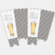 Cheers and beers to 50 years! This fun birthday party popcorn favour box has a frothy tall glass of beer and casual font pairing with handwritten script and serif fonts spelling out "Cheers to 50 Years!" You can edit the age to any age if so desired. The sides of the favour box have a black and white diagonal stripes pattern to coordinate with the other party supplies in a matching collection.